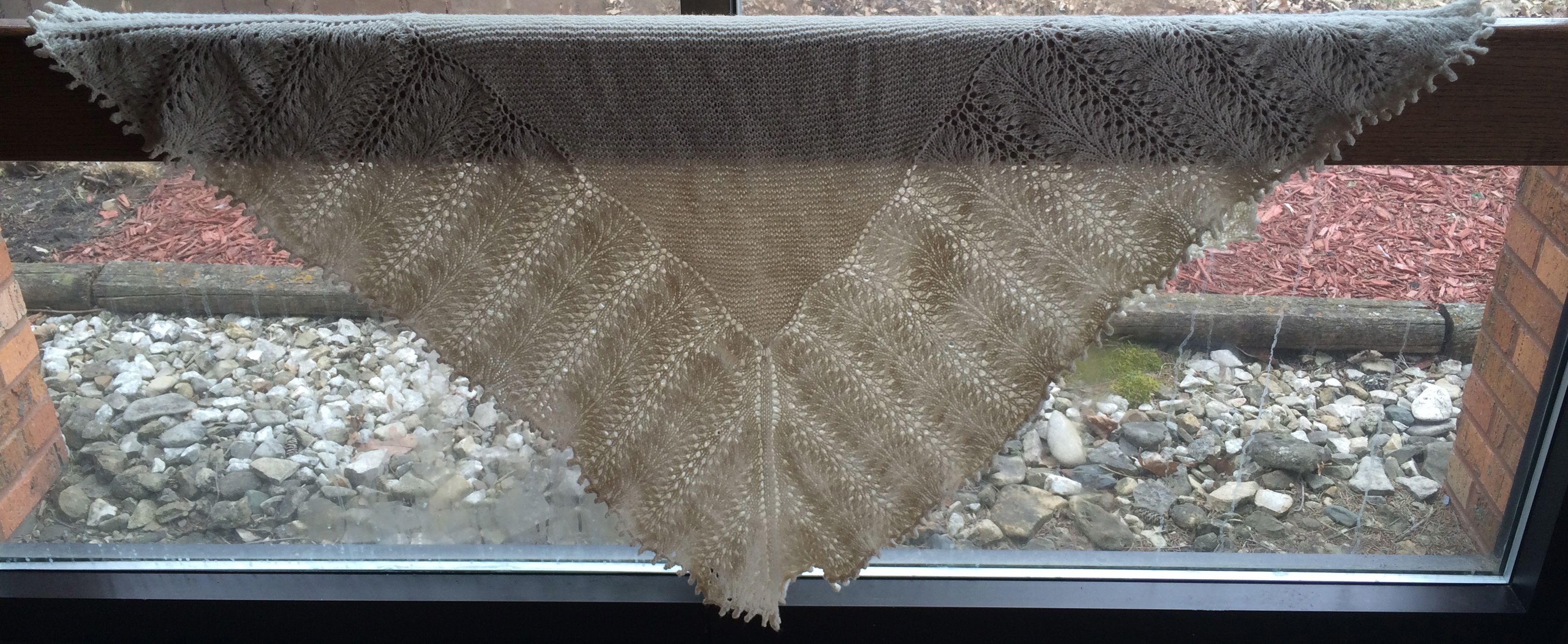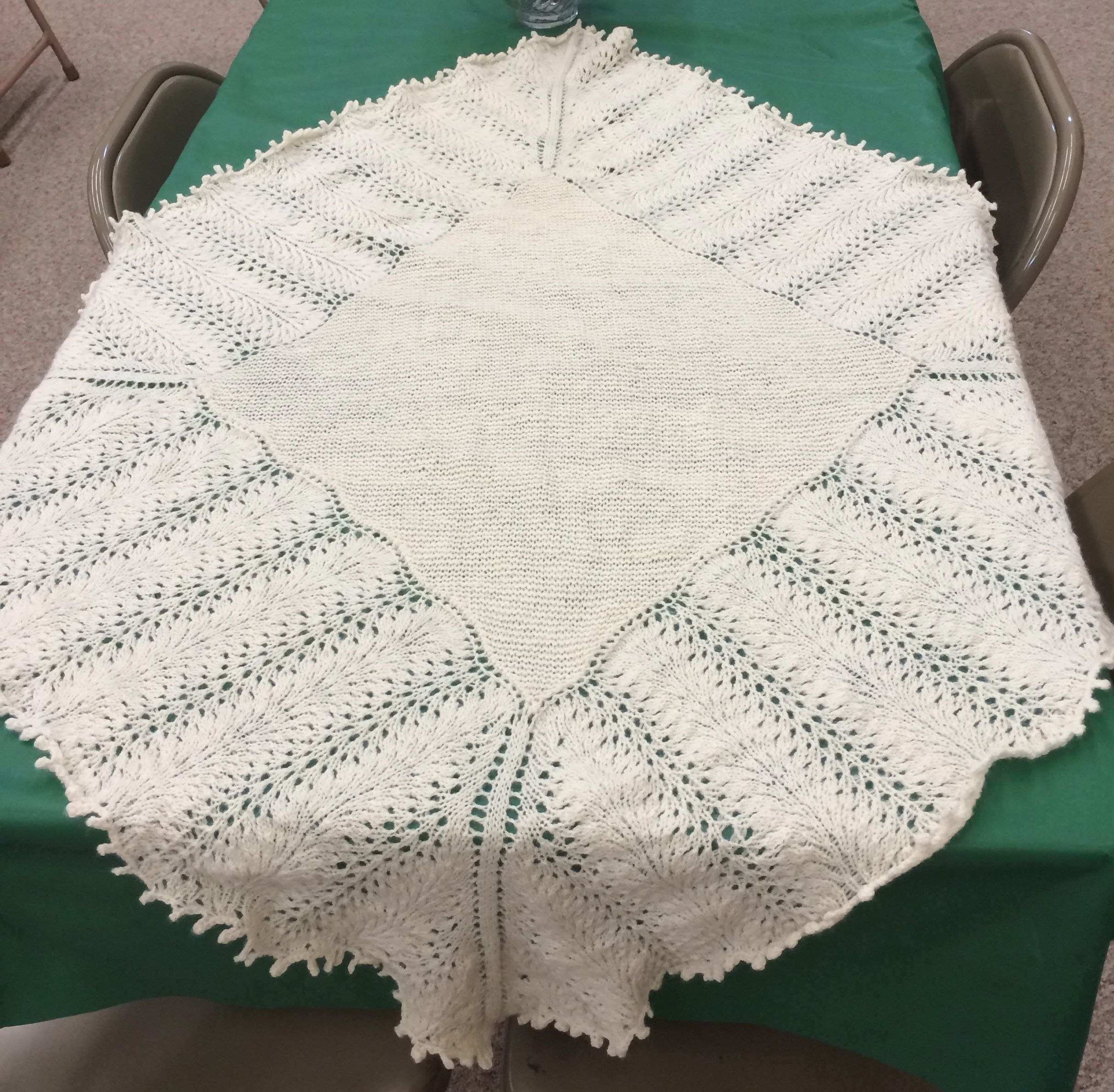 I just happened to finish it when I was helping out my friends Ellen and Wanda at their booth for their shop Fiber Curio and Sundries at Fiberpalooza in Winterset, Iowa on Saturday. I took absolutely zero photos as my hands were busy the entire day long either setting up or knitting the shawl. However, it was a really fun event to both attend and sell at and I had a good, though very long, day.