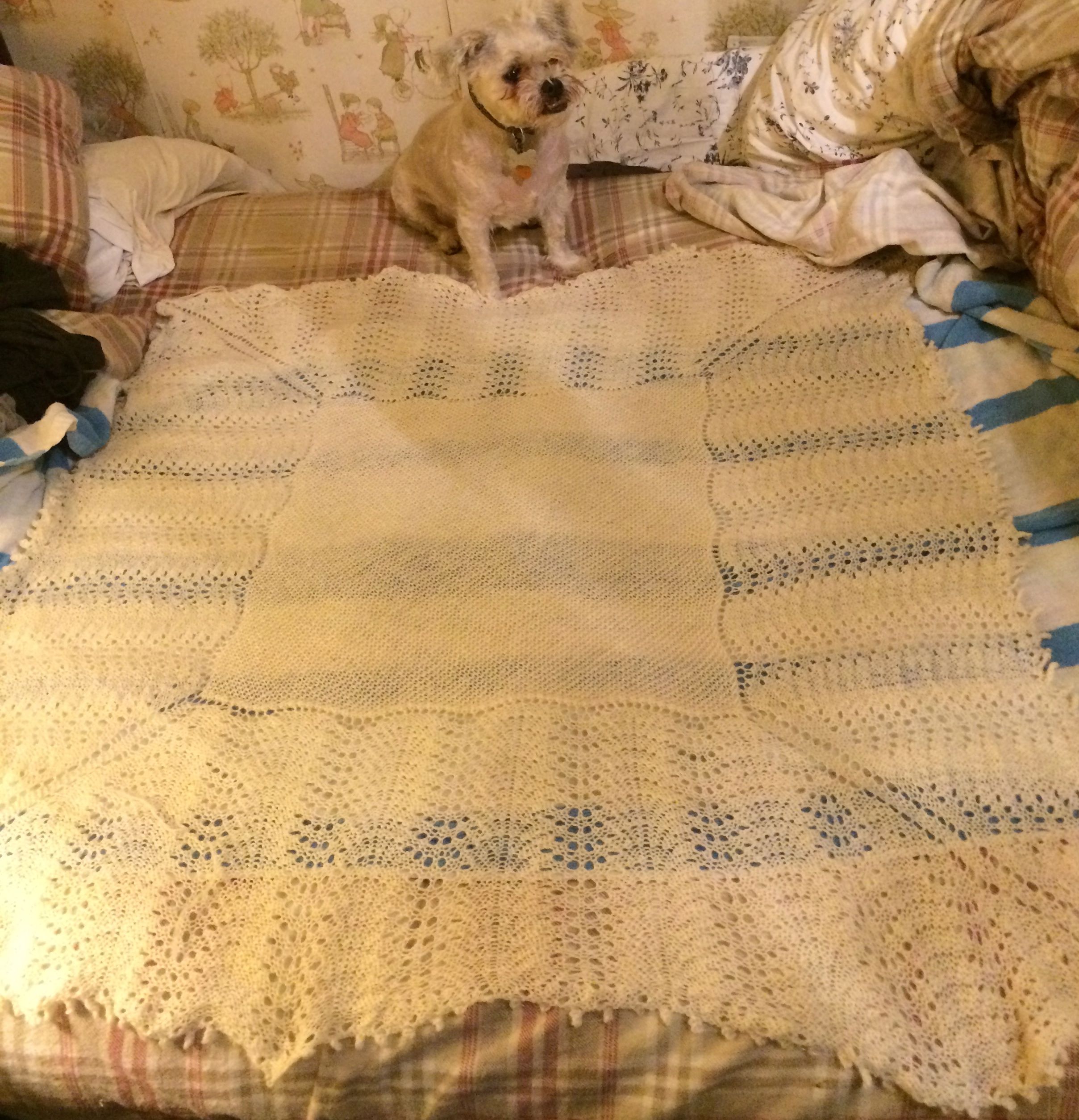 I ended-up finishing casting-off at around four o’clock on the Saturday before. I blocked it on my bed that evening.