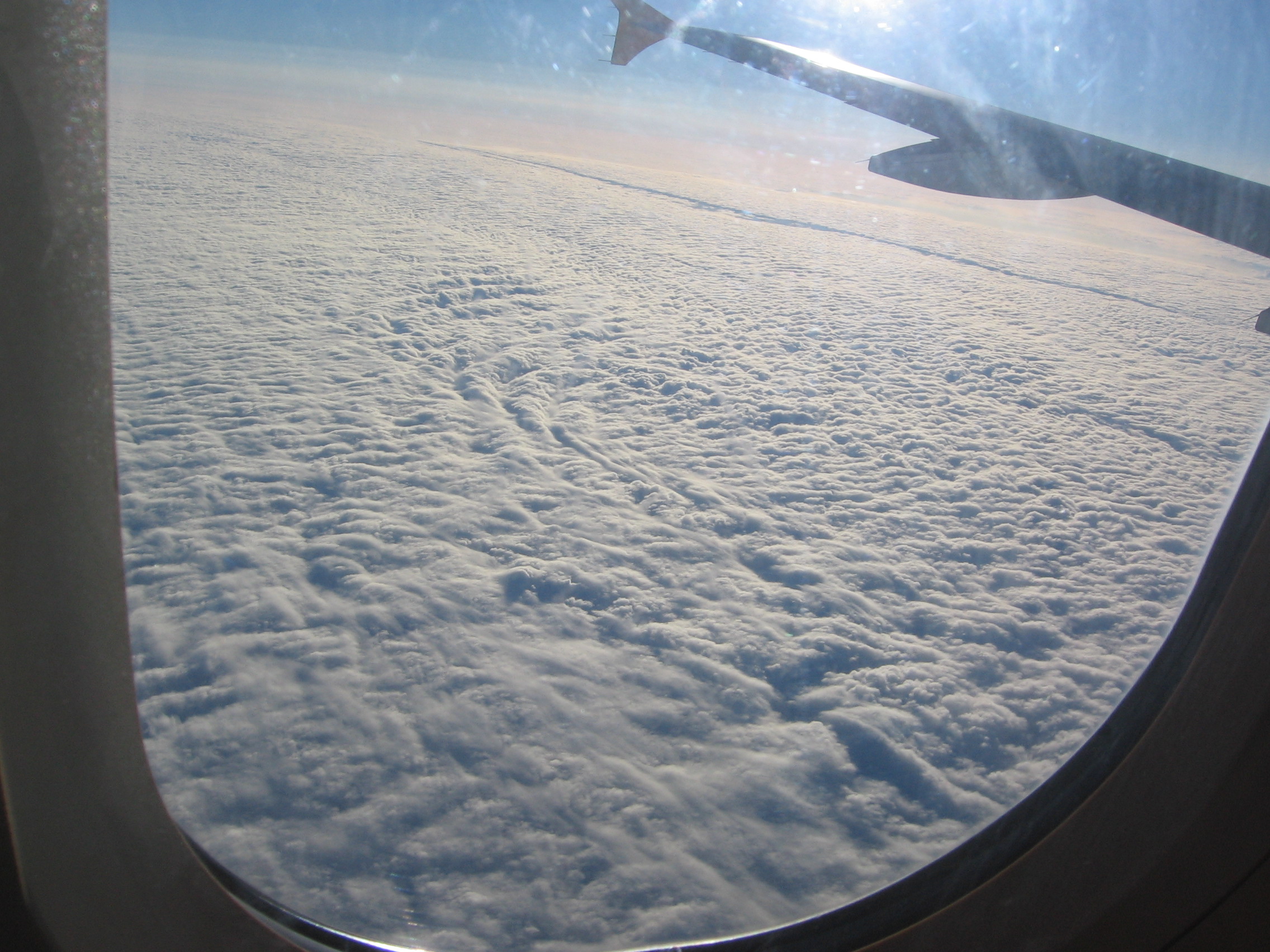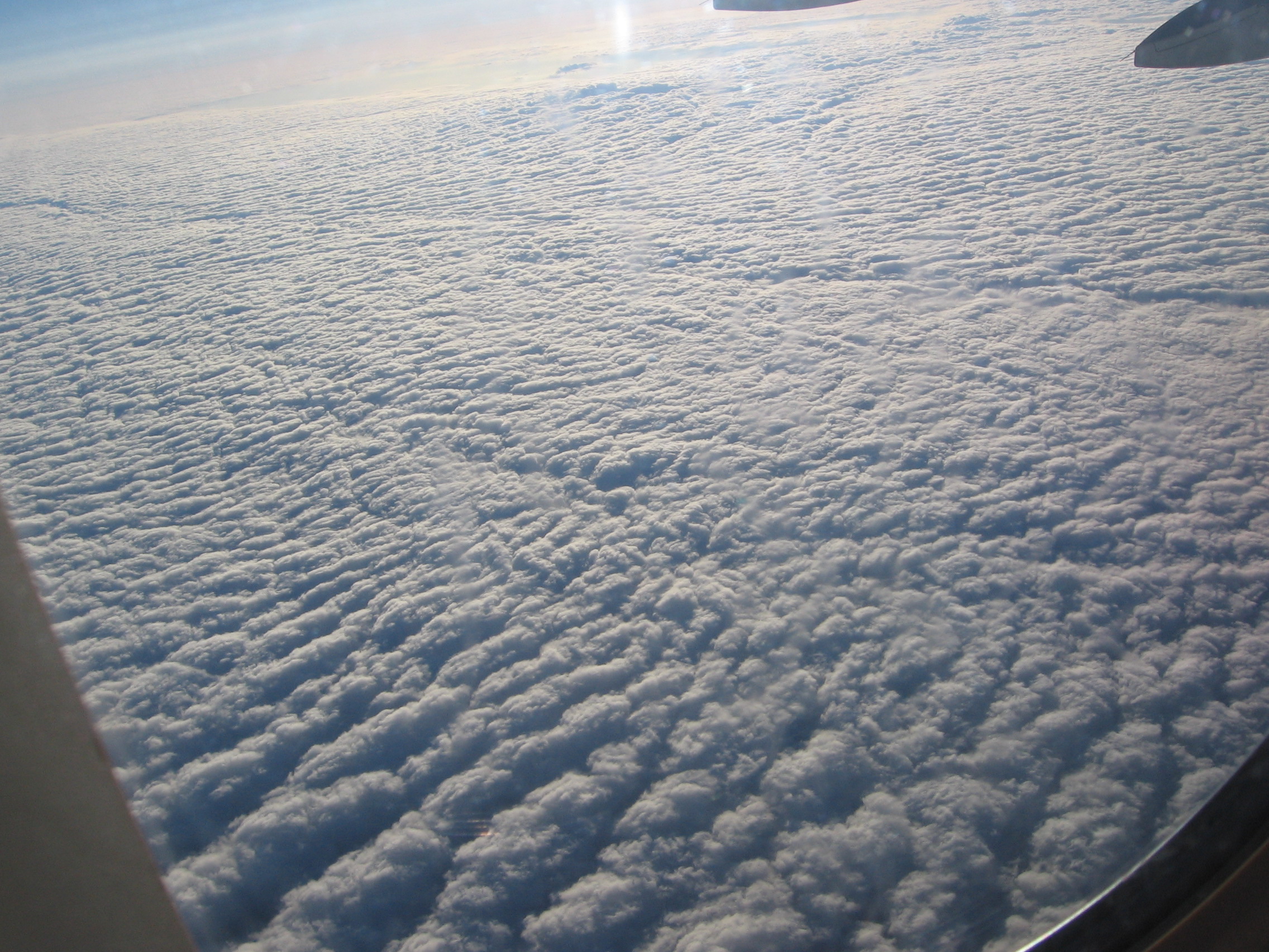 However, one thing that I noticed, was that the clouds from hurricane Hanna looked a lot like an unprocessed fleece, with the little waves in it and the right colors. I was so geeky, I even took pictures of the pretty wool-clouds from the airplane.