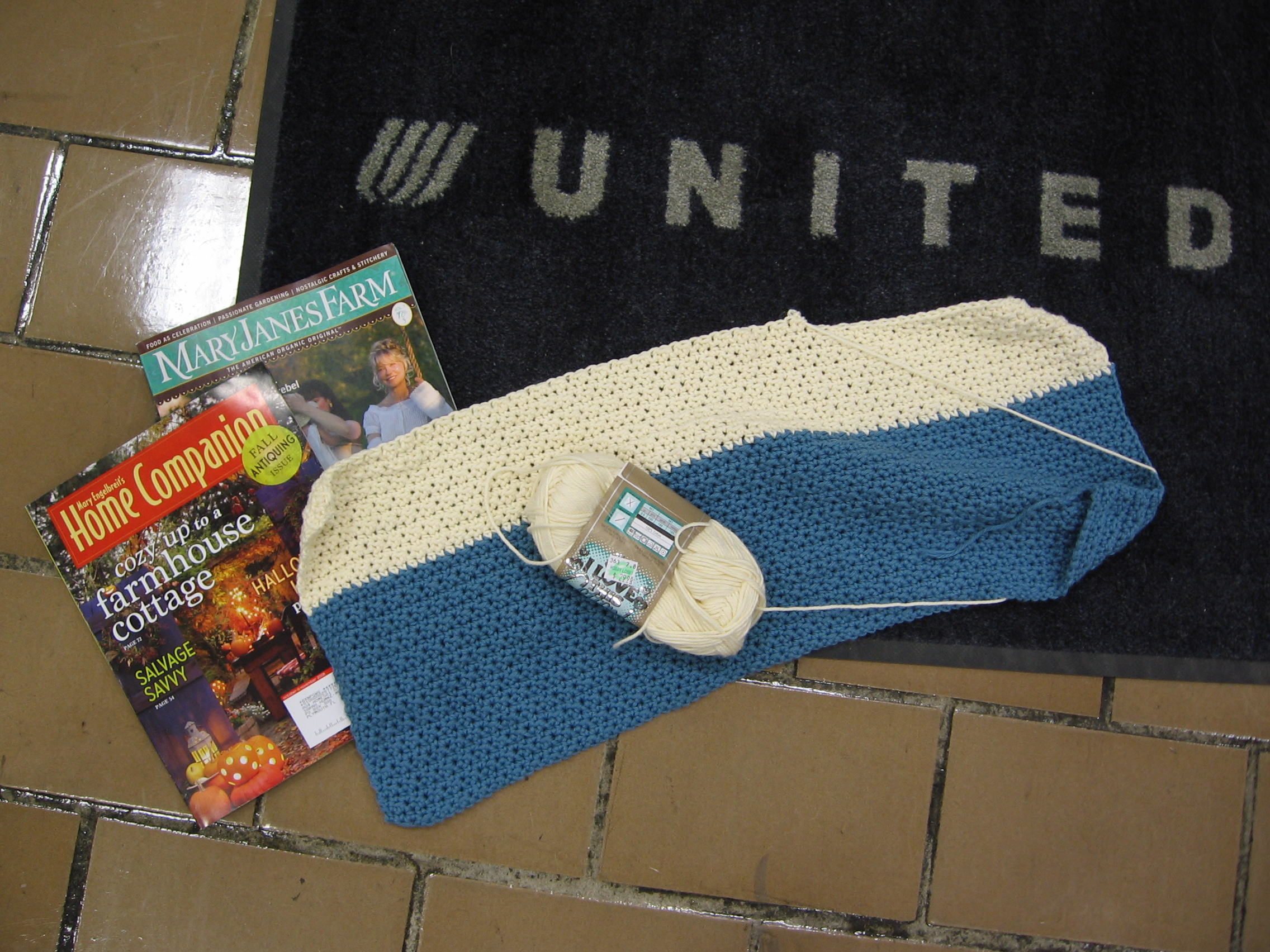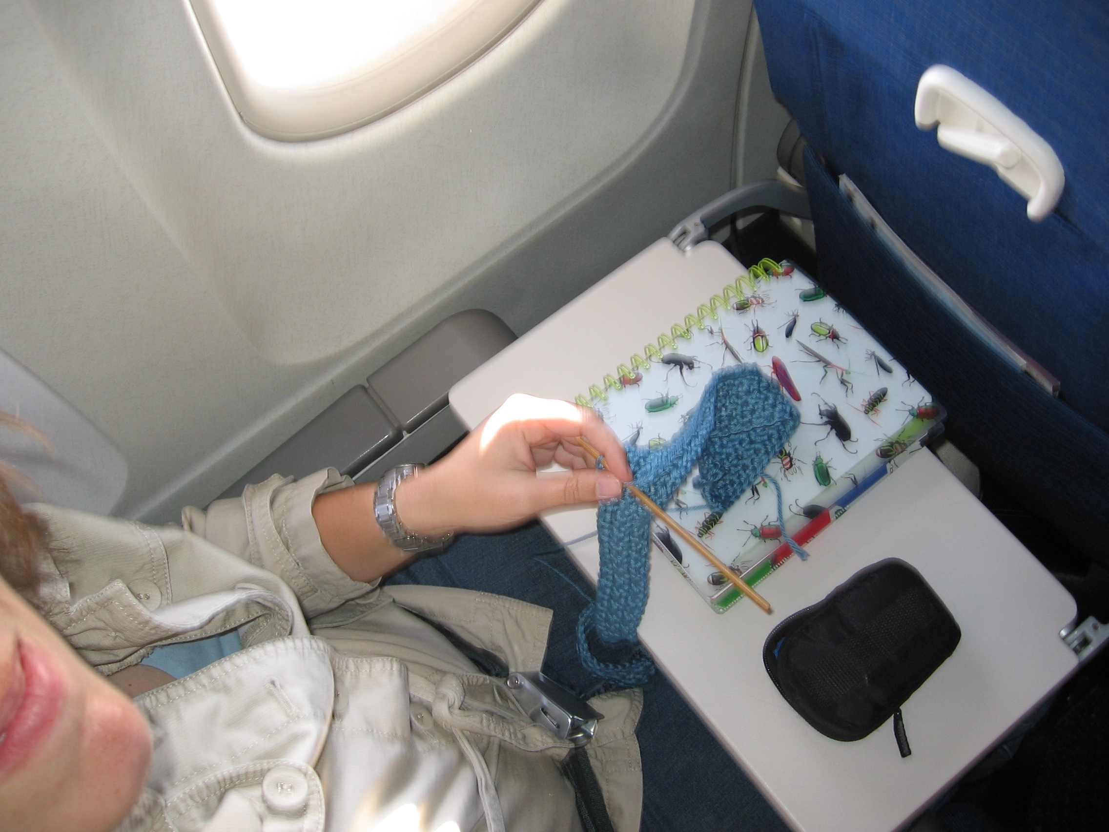 I got to Chicago and made it from one plane to the next with even enough time to grab a piece of overpriced pizza on the way. I get on the plane, sit down and settle in for a long flight. I am just taking out my crochet, when the mother and devil child start walking down the aisle. And then sit down directly behind me.