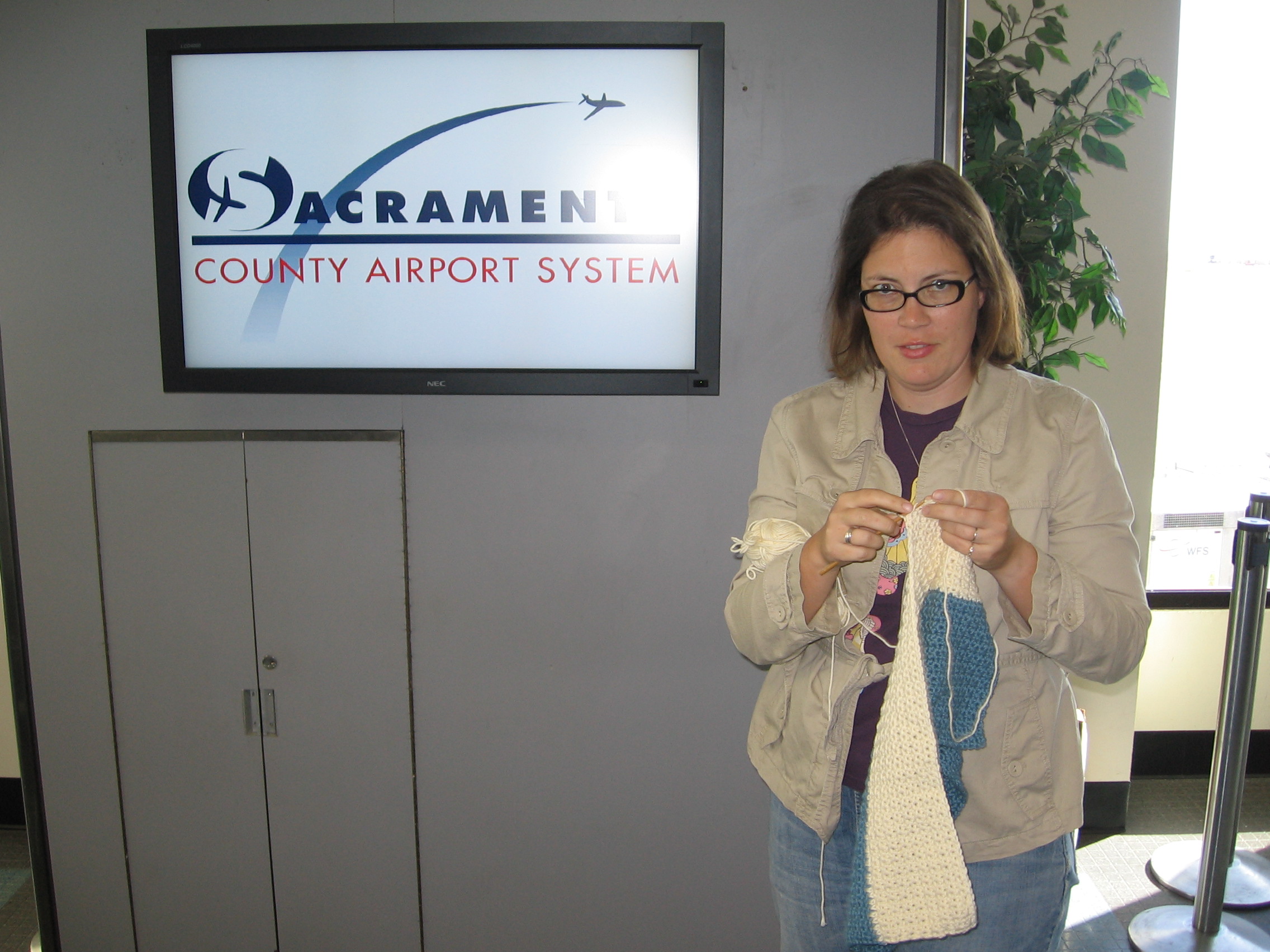 Chris was at the Sacramento airport waiting for me when I landed. This airport is really small, it makes the Des Moines airport feel like O’Hare or something, it is small. While we were waiting the surprisingly long amount of time it took for our bags to arrive, I took a picture of the traveling blanket and the magazines that I read to show how much I had gotten done on the way there.